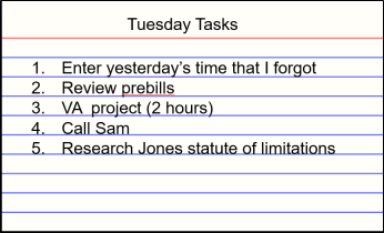 - Did I do everything that I promised relating to the activity that I performed for this time entry? If not, update your task list and/or schedule time on your calendar to do it.