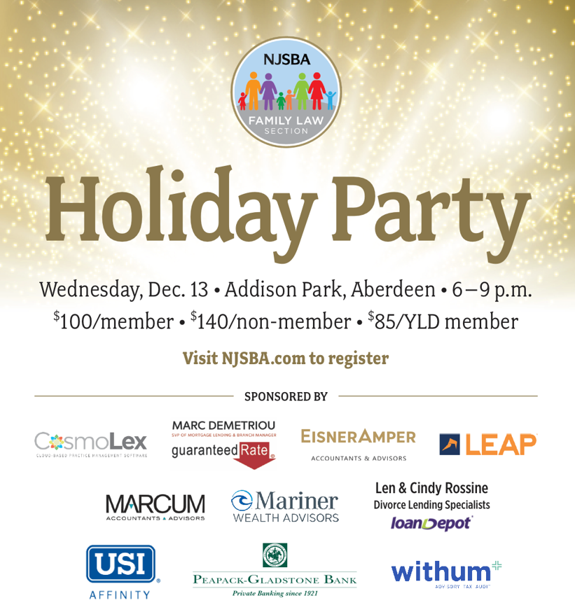 Don't forget to register and join us for an elegant evening at the NJSBA Family Law Section Holiday Party taking place this Wednesday, December 13th at Addison Park in Keyport at 6:00 p.m.