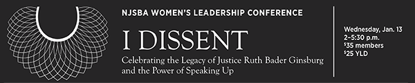 Click here to register for NJSBA Women's Leadership Conference--I Dissent: Celebrating the Legacy of Justice Ruth Bader Ginsburg and the Power of Speaking Up.